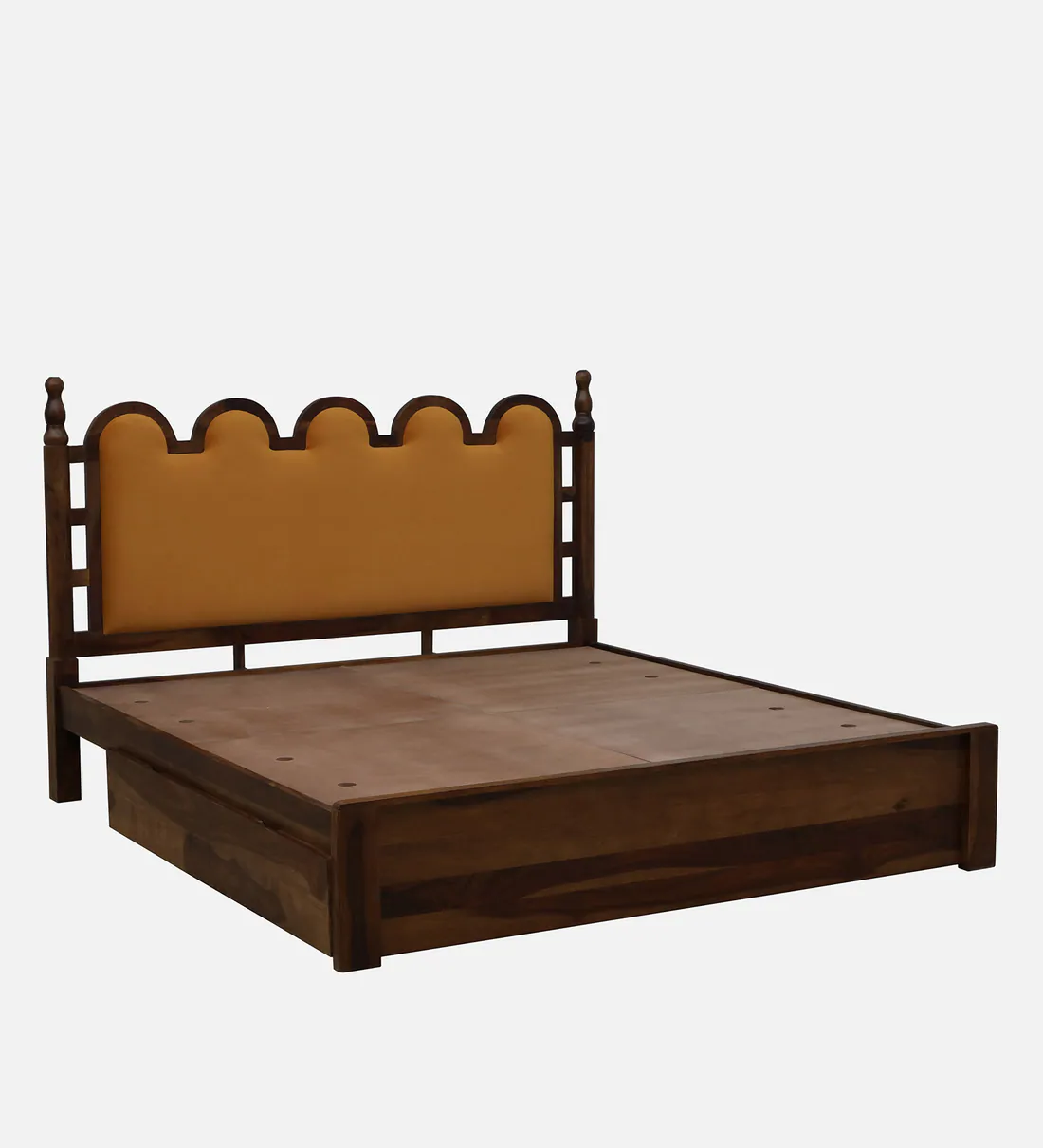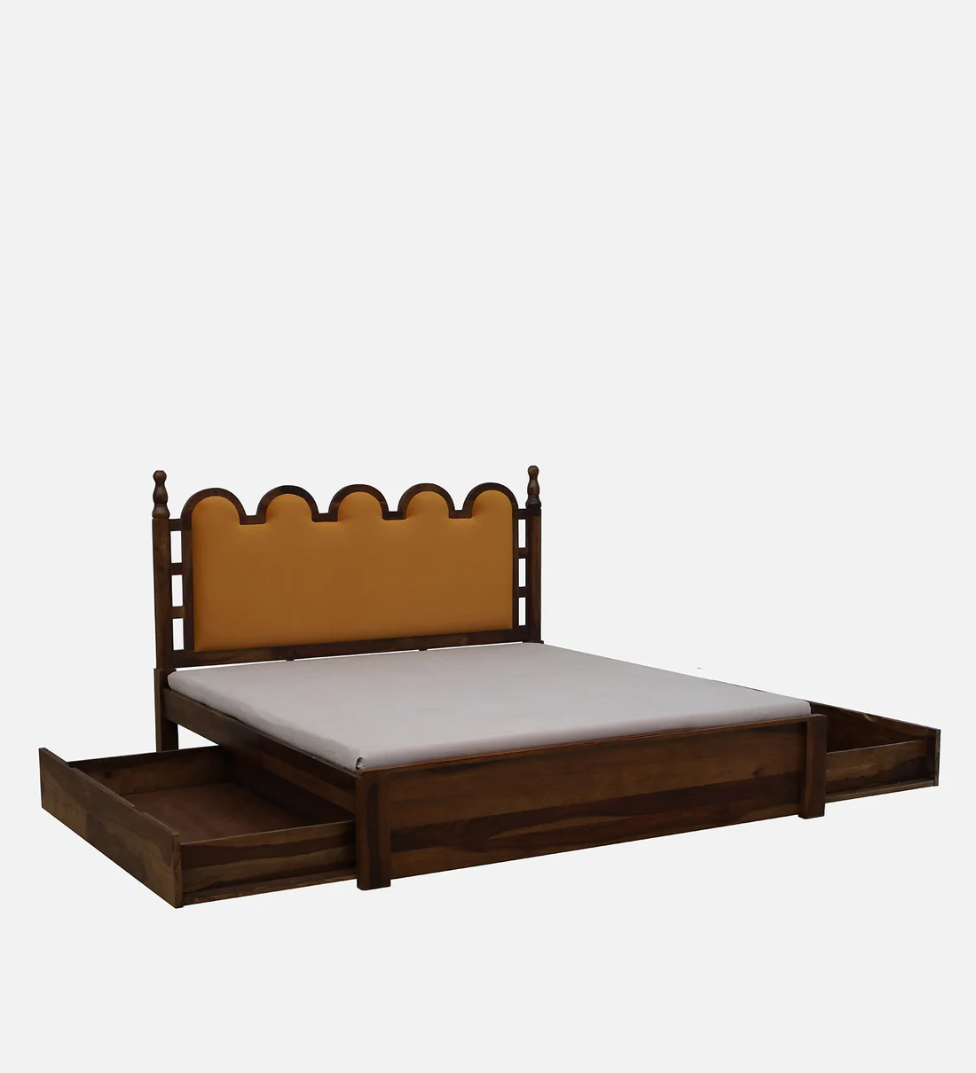Enhance your bedroom with the Elegant Wooden Bed with Storage Solutions by Classic Wood, featuring spacious drawer storage and elegant craftsmanship.