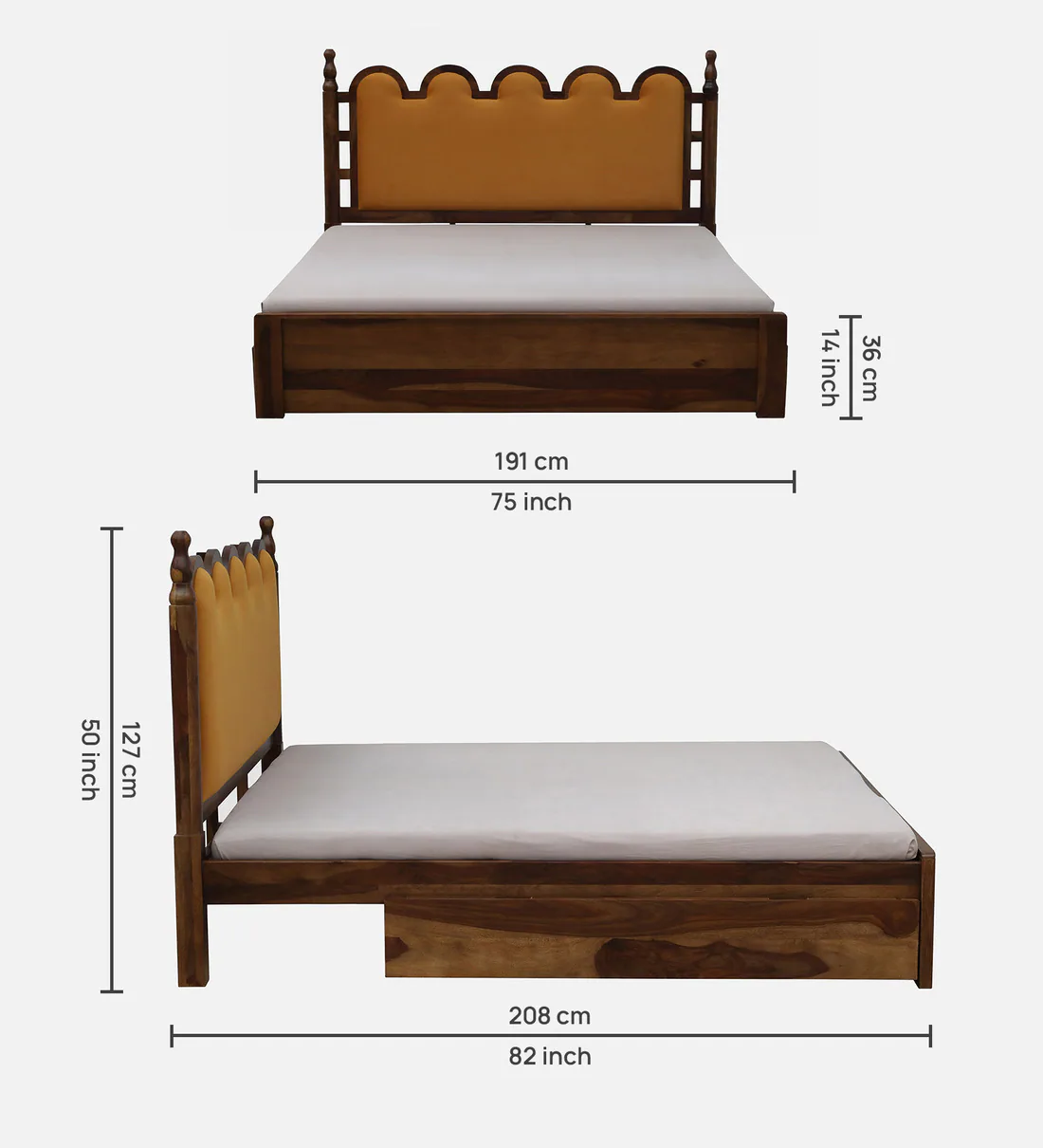 One of the standout features of this wooden bed is its innovative drawer storage. With spacious drawers ingeniously incorporated into the frame, you can finally say goodbye to clutter. Ideal for stowing away extra linens, seasonal clothing, or personal items, these drawers enhance the functionality of your bedroom while maintaining a sleek and sophisticated aesthetic. Whether your space is limited or you simply prefer organized living, this bed is the perfect solution.