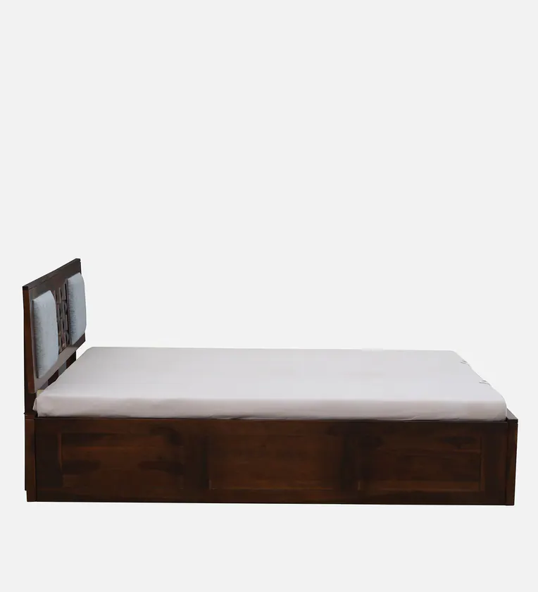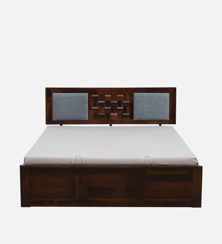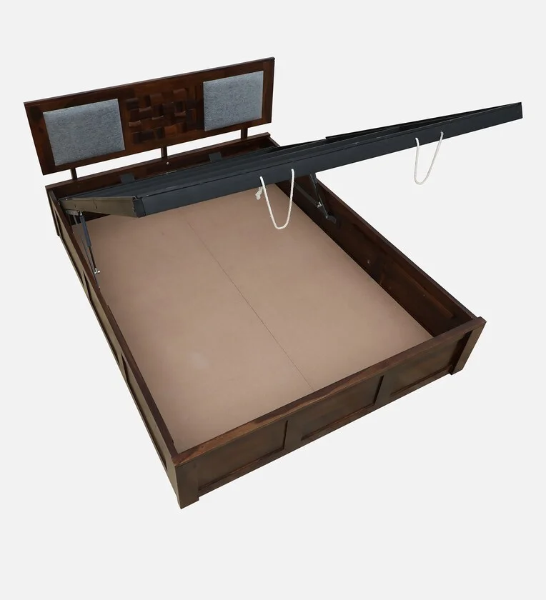 Teak Sheesham Wood Bed with Hydraulic Storage and Slatted Headboard Design