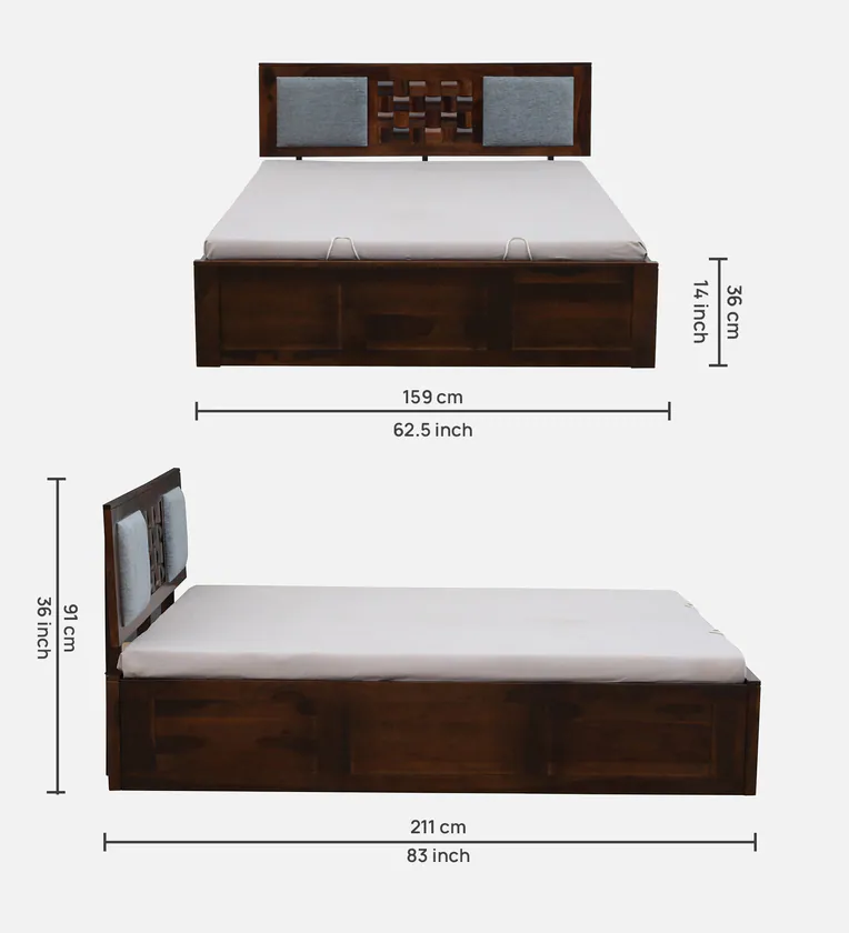 This bed is made from a superior blend of Sheesham and teak wood, known for their natural strength, rich grains, and longevity. The dual-wood construction not only ensures lasting durability but also adds a rich and warm tone to your bedroom decor.by wooden furniture in Bengaluru.