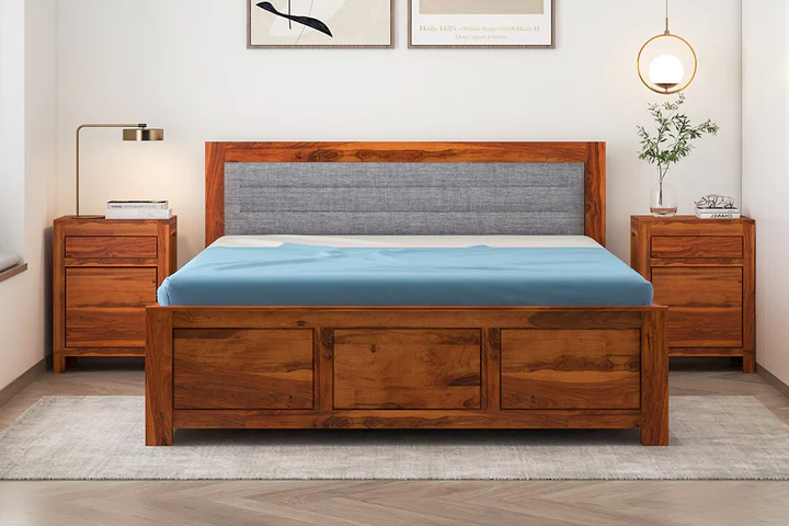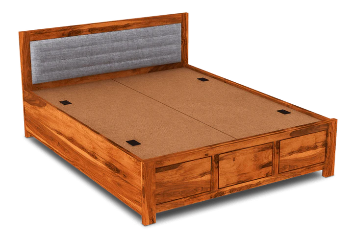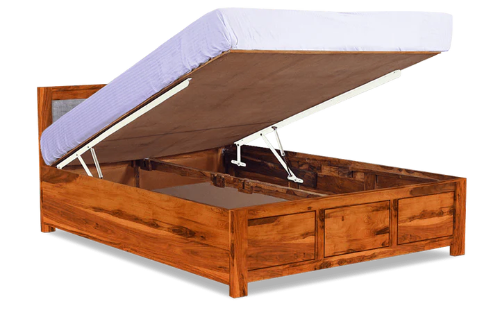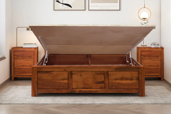 The Buy solid wood bed online with Hydraulic Storage by Classic Wood combines timeless craftsmanship with modern functionality. Crafted from premium solid wood, this bed offers durability and a rich natural finish that complements various bedroom decors.by wooden furniture in Jaipur.