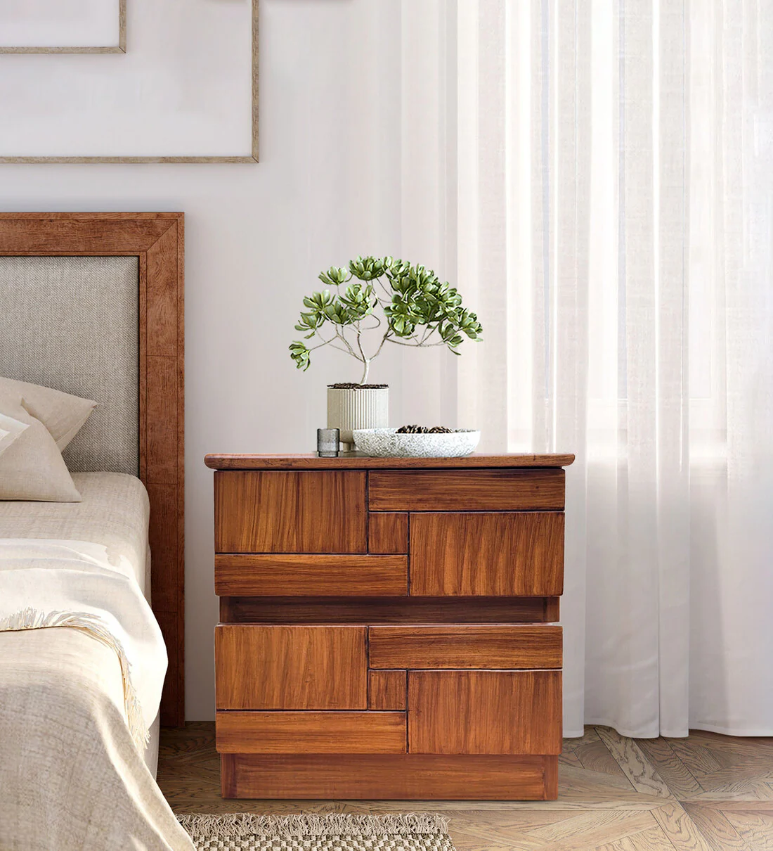 Functional Design for Modern LivingΒ Sheesham Wood Nightstand