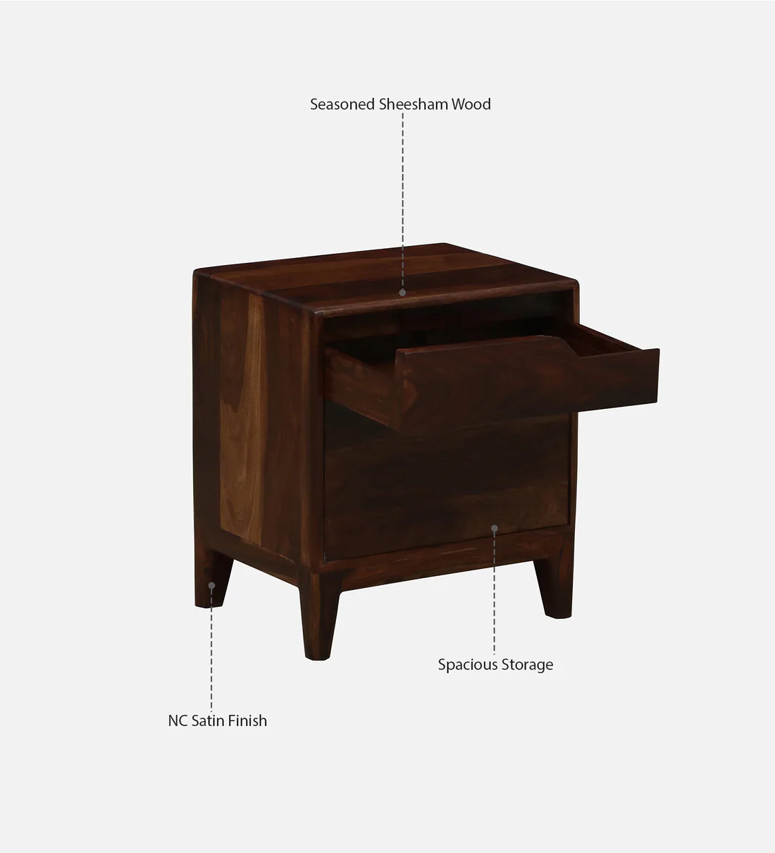 Ample Storage with Deep Drawer Space Efficient Wooden Bedside