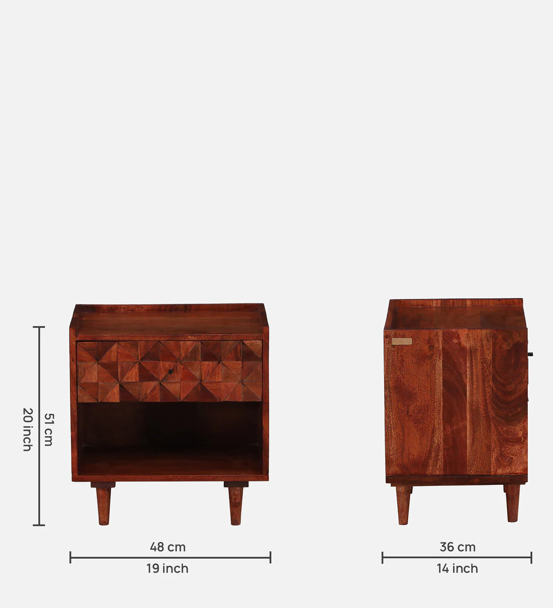 Introducing the Vasel Sheesham Wood Bedside Table by Classic wood, an elegantly designed piece that combines functionality and style. Crafted from premium Sheesham wood, this bedside table reflects the natural beauty of wood grain while offering a sturdy and reliable addition to your bedroom. Its rich finish not only enhances the aesthetic appeal but also ensures lasting durability, making it a perfect companion for your cozy nights.