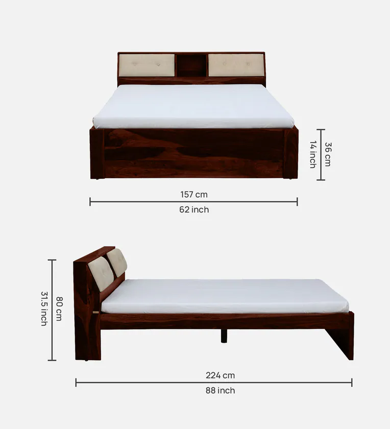 Bring coastal charm to your home with Classic Wood Sheesham Wood Bed, featuring a spacious headboard storage and elegant wood design.