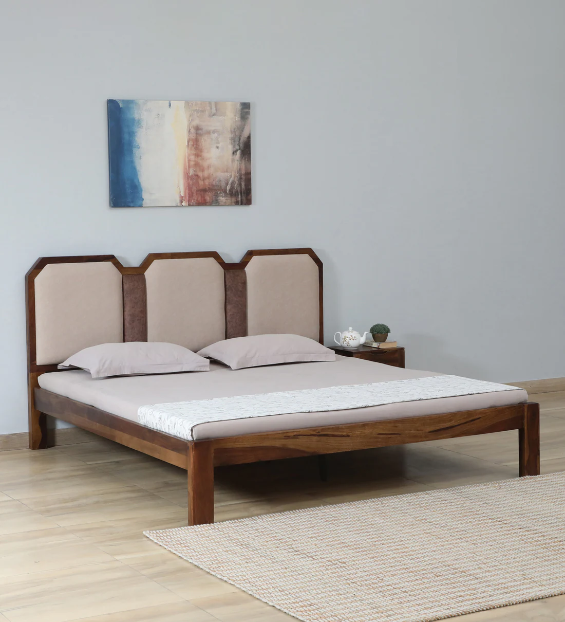 Experience elegance and strength with the Elegant wooden bed for bedroom by Classic Wood—featuring a soft Gaddi headboard and sturdy frame.