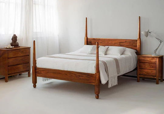 • The Sheesham wood poster bed design by Classic Wood features a timeless four-poster frame, bringing grandeur and durability to your bedroom.by wooden furniture in Sikkim.