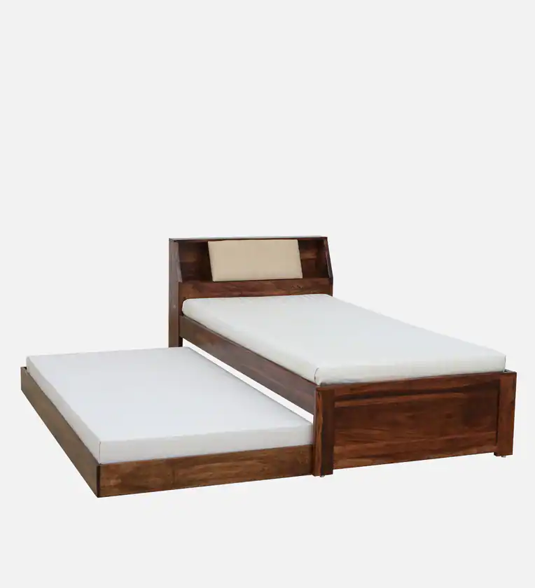 The Classic Single Wooden Bed in Sheesham Premium Finish with Trundle is an epitome of style and functionality, expertly designed to enhance your bedroom dΓ©cor. Crafted from high-quality Sheesham wood, this bed not only offers durability but also showcases a rich natural grain, ensuring that each piece is unique. Its classic aesthetic makes it a perfect addition to any space, creating a welcoming environment for relaxation and rest.