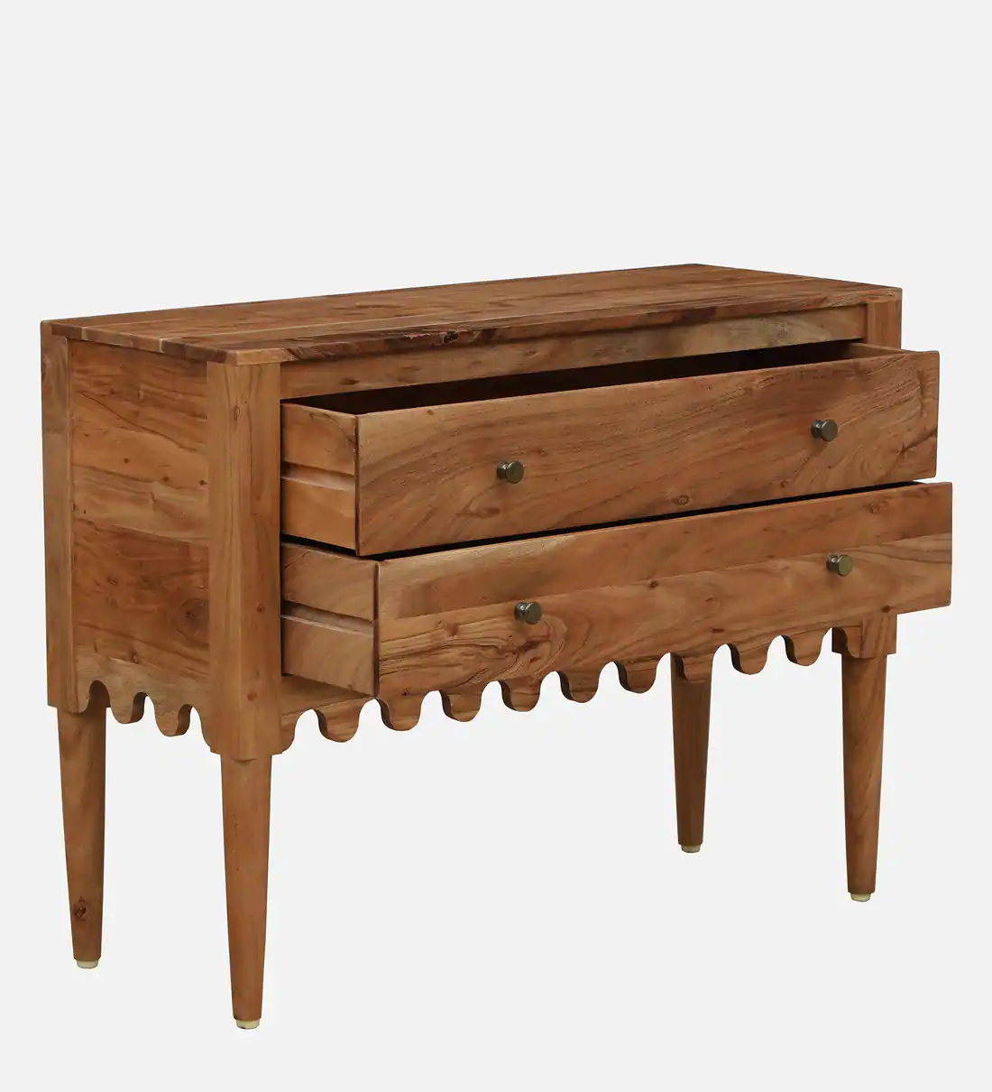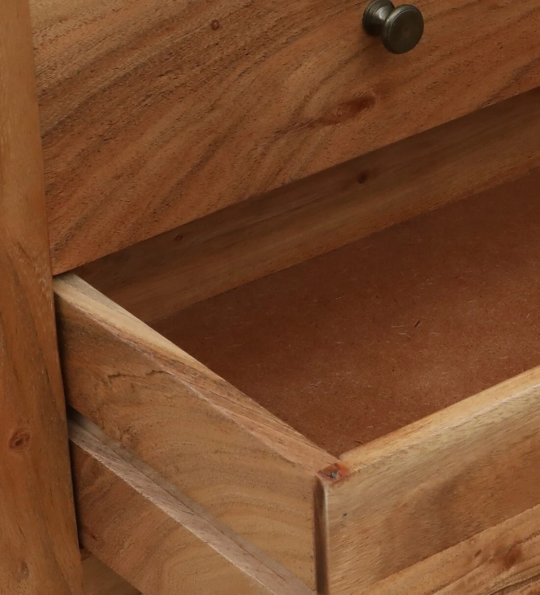 Acacia Chest of Drawers Wooden with Metal Pulls for Vintage Aesthetic Appeal