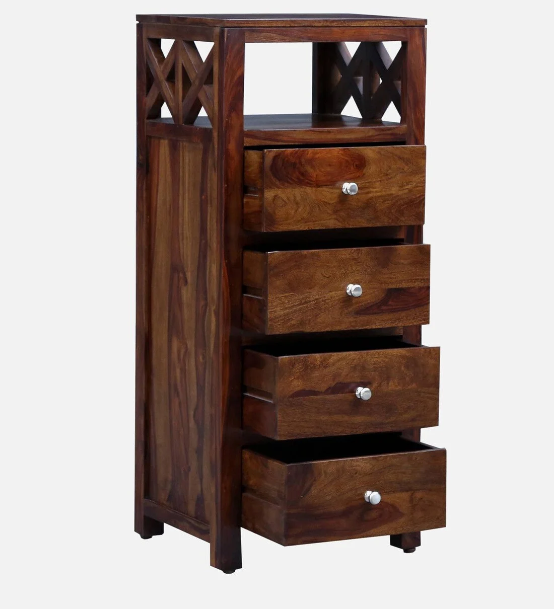 Constructed using high-quality solid wood, this chest ensures durability and long-term reliability. The sturdy build is complemented by a warm teak finish that enhances the wood’s natural grain and offers a timeless look suitable for any modern interior.by wooden furniture in Kolkata.