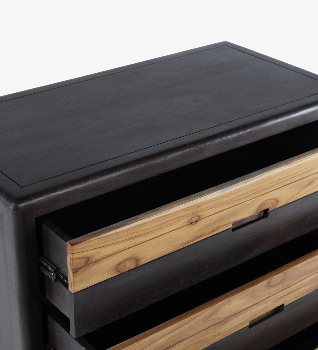 The Wooden Storage Chest is thoughtfully designed to provide ample storage space for all your essentials. Whether you need a place to store blankets, toys, books, or seasonal clothing, this chest is up to the task. Its spacious interior ensures that your belongings are organized and easily accessible while maintaining a clutter-free environment. The chest features smooth-gliding drawers, allowing you to retrieve items effortlessly.