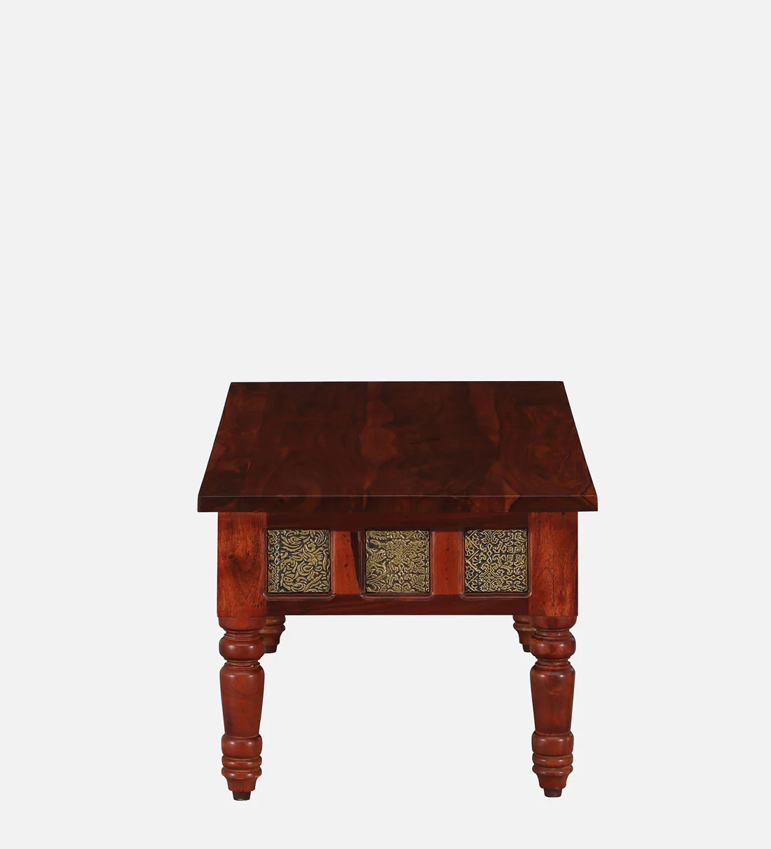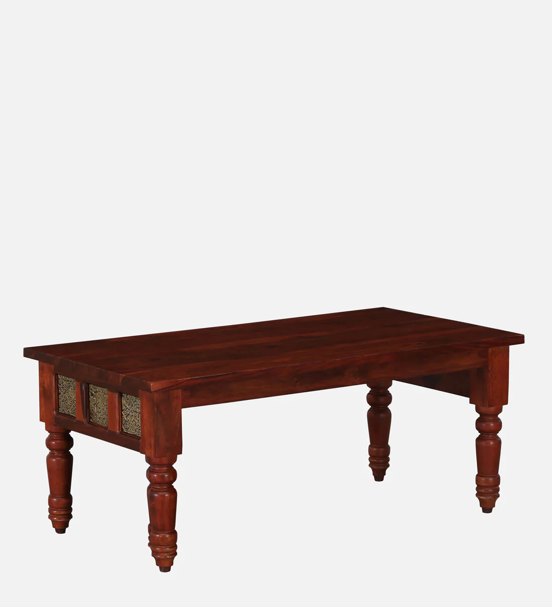 Add a touch of heritage charm to your space with thisΒ Coffee Table Set (2 Stools) in Sheesham Wood with Brass Cladding. Designed for compact areas, it brings luxury, utility, and warmth to your living room.