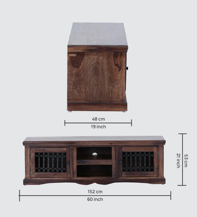 Upgrade your home entertainment experience with the Elegant Sheesham TV Stand with Dual Drawers and Wooden Top Finish. It’s more than just furniture; it’s a stylish statement piece that reflects your taste and enhances the functionality of your living area.