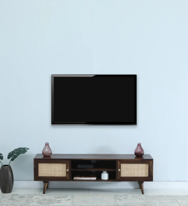 This TV unit is designed with the modern homeowner in mind. The ample storage space allows you to easily organize your electronic devices, DVDs, and more. The open rack provides easy access to your gaming consoles or media players, ensuring everything is within reach when you need it. With its sleek appearance and robust build, this Sheesham wood TV unit does not just serve a practical purpose but also acts as a focal point in your living room.