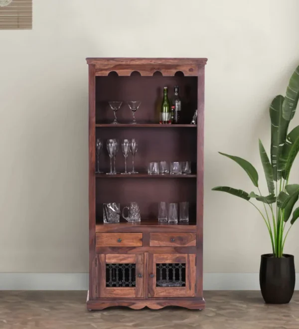Solid Wood Crockery Cabinet Online with Open Shelf and Closed Storage Space