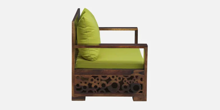 Add sophistication and durability to your space with this 2 Seater Solid Wood Sofa, crafted with a strong wooden frame, tufted cushions, and a stylish arm design. The tufted upholstery provides plush comfort, while the armrests feature sleek contours that enhance its overall modern look.