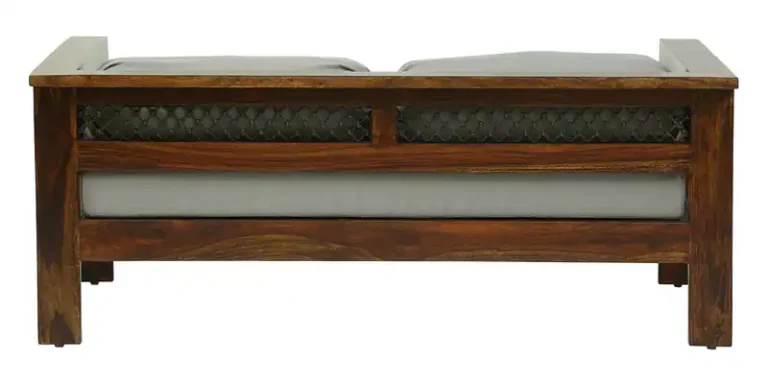 At Sarve Furniture, we believe in the importance of quality craftsmanship. This 2 seater sofa is meticulously designed, showcasing the natural beauty of Sheesham wood. Known for its strength and durability, Sheesham wood ensures that your sofa stands the test of time. The Provincial Teak finish accentuates the natural grains and textures of the wood, giving it a classic yet modern look that will complement any dΓ©cor style.