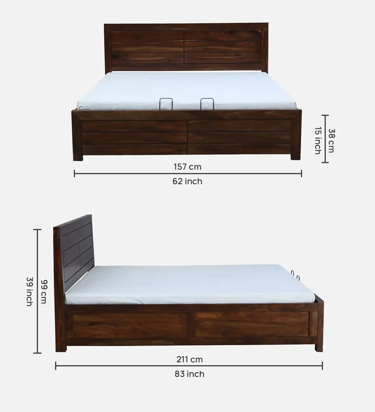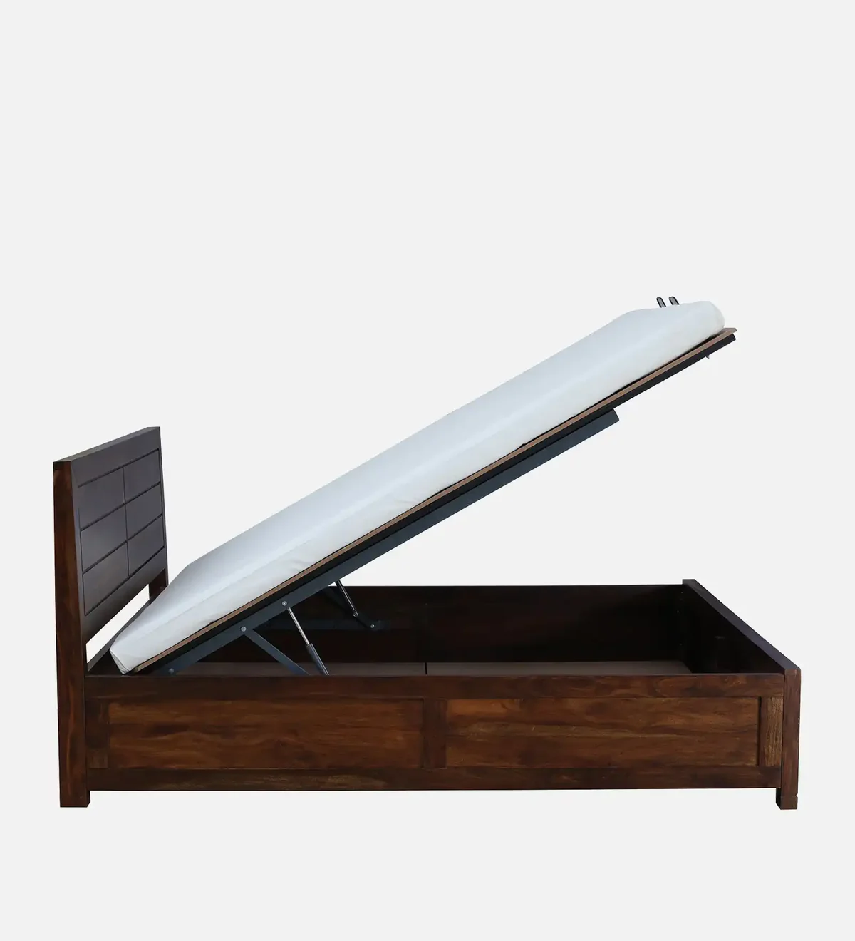 Say goodbye to clutter with the innovative hydraulic storage feature. The Coverings Indian Rosewood Bed is designed to provide ample storage space beneath the mattress, perfect for stowing away extra bedding, seasonal clothing, or other personal items. The hydraulic lift mechanism allows for easy access, making it simple to keep your bedroom organized without sacrificing style.