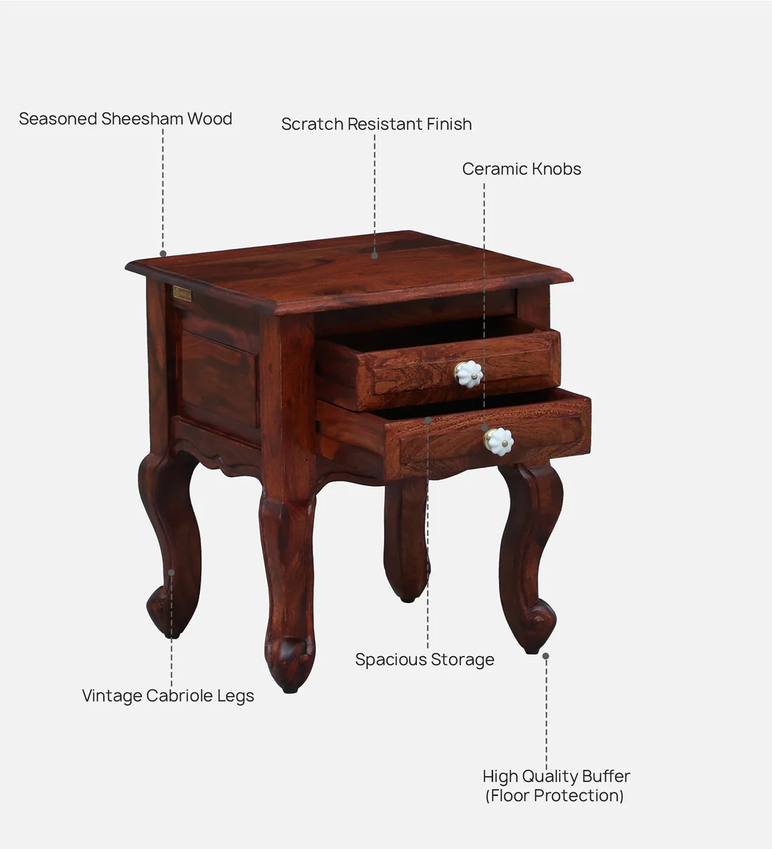 Quality Craftsmanship in Sheesham Wood Wooden Nightstand Table with Storage