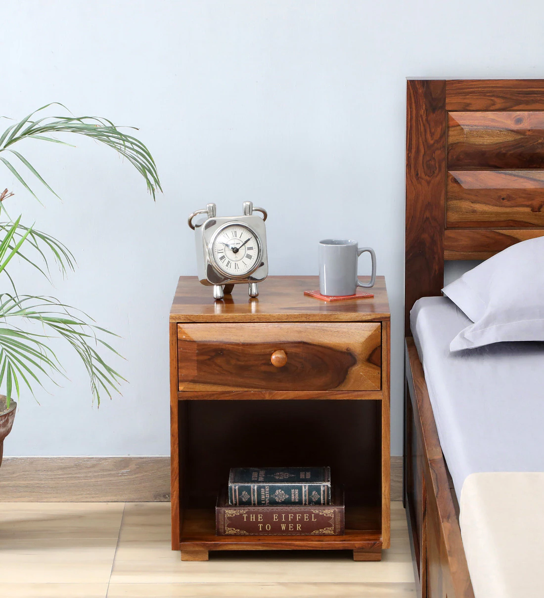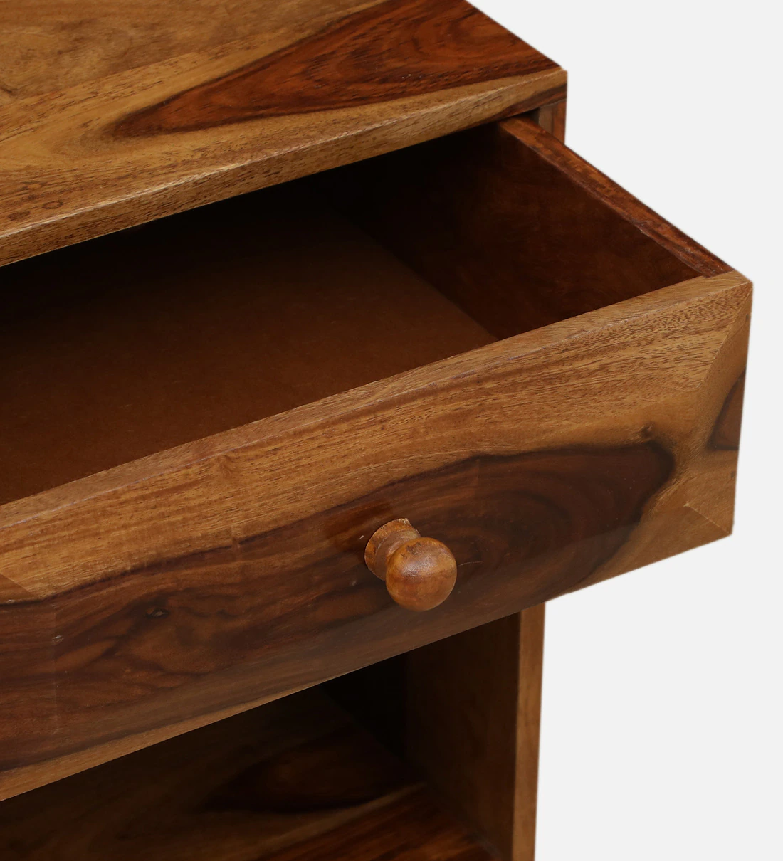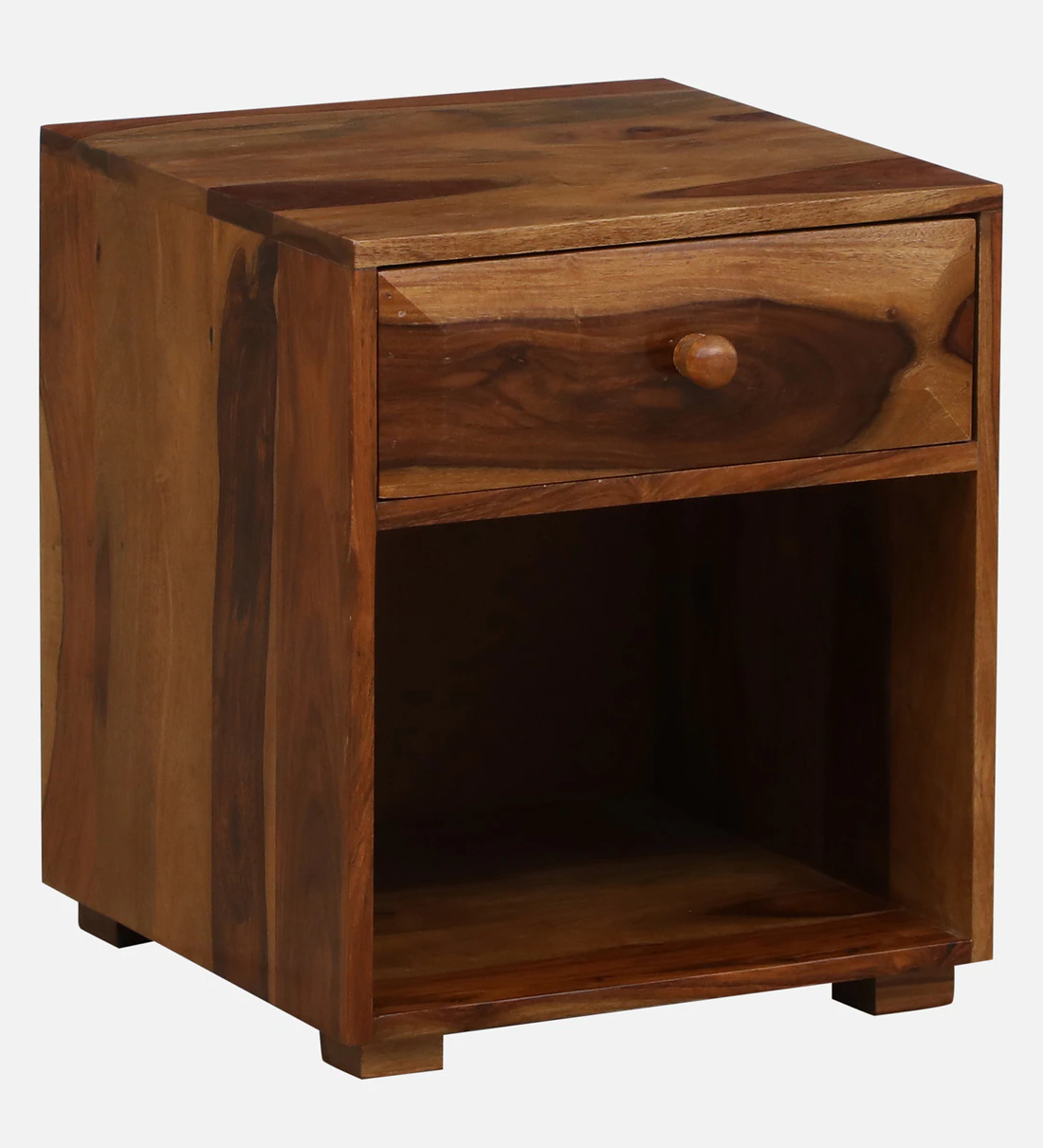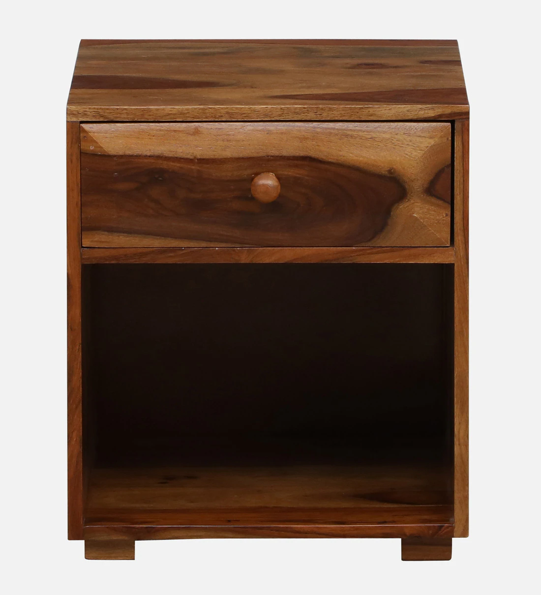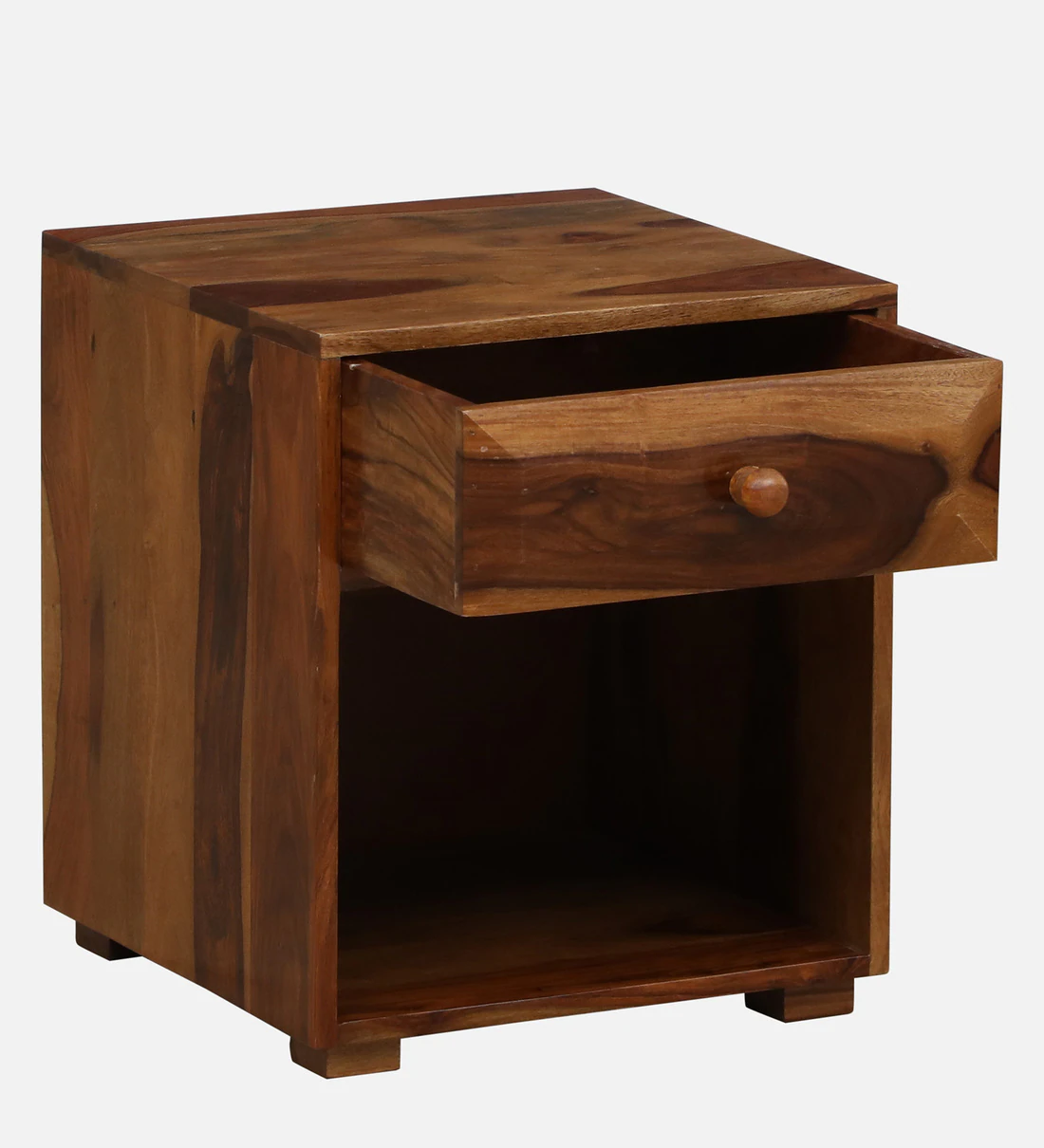 Enhance your bedroom with this finely crafted wooden nightstand, designed for elegance and everyday functionality. The smooth polished finish highlights the rich wood grain, while soft-close drawers provide quiet, effortless storage for personal items. A spacious open shelf offers quick access to books, décor, or nighttime essentials. Built from durable wood, this nightstand is a perfect blend of beauty and practicality—ideal for both modern and traditional interiors. solid wood furniture in mumbai.