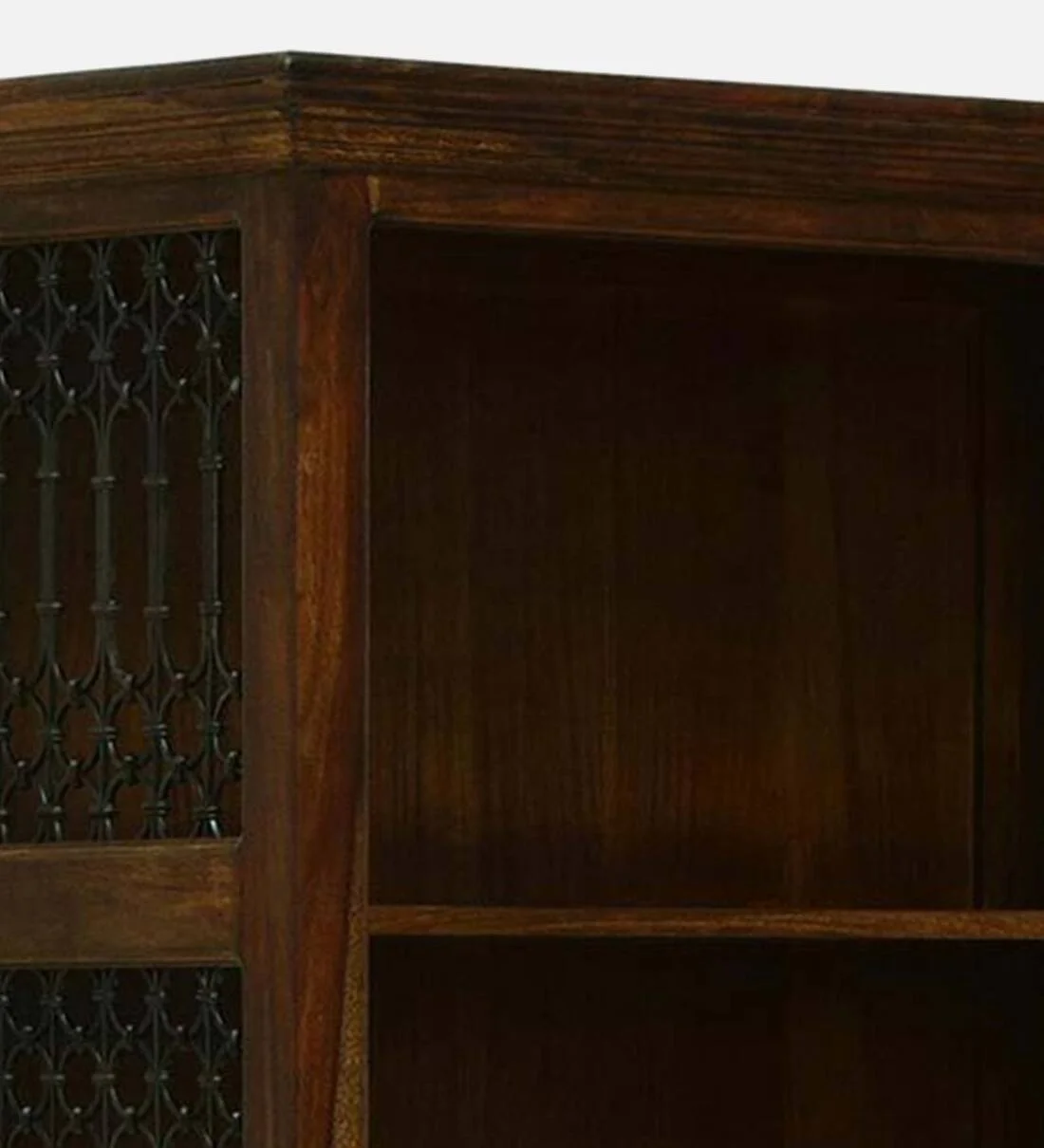 The upper open shelves are great for showcasing books and collectibles, while the lower closed cabinets keep clutter hidden and your space organized. The polished finish highlights the natural grain of solid wood, adding timeless beauty to any dΓ©cor style.