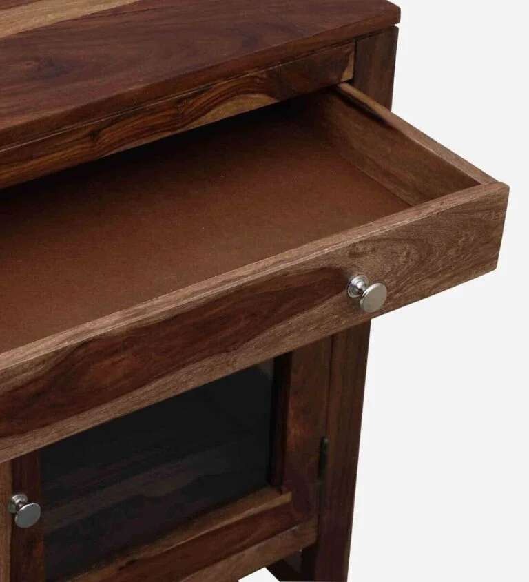 Introducing the Compact Wooden Crockery Unit with Glass Panels and Spacious Drawer Base, a perfect blend of functionality and style. This beautifully crafted unit not only offers ample storage for your crockery but also enhances the aesthetic appeal of any room. Its sleek design and warm wooden finish make it an attractive addition to your dining area, kitchen, or living room.