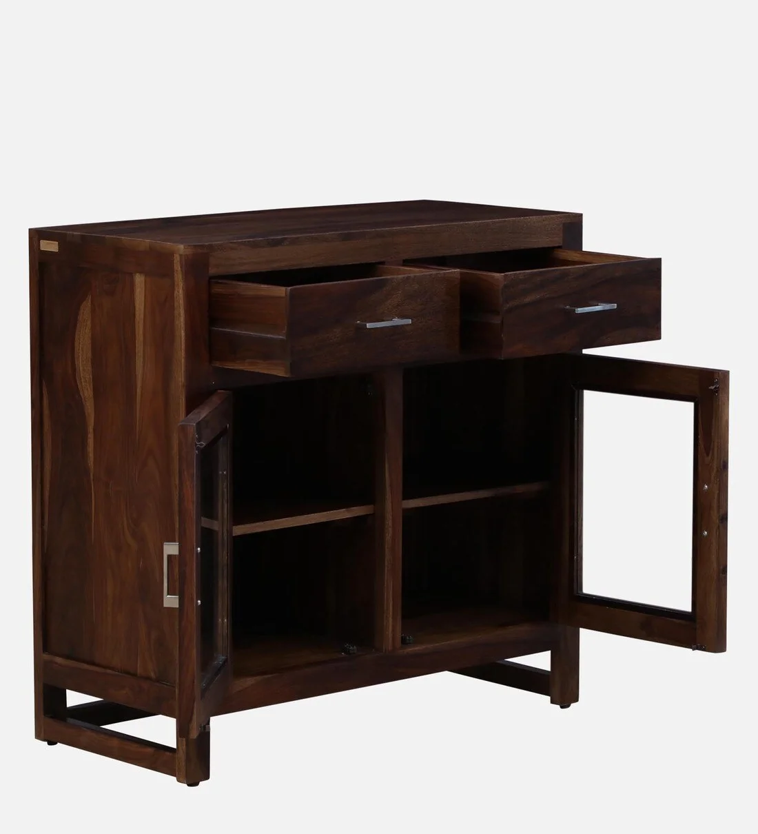 Add elegance and utility to your dining area with the Wooden Crockery Unit from Sarve Furniture. Featuring a sleek glass showcase and multiple storage drawers, this unit combines functionality with timeless design—ideal for modern and traditional interiors alike.