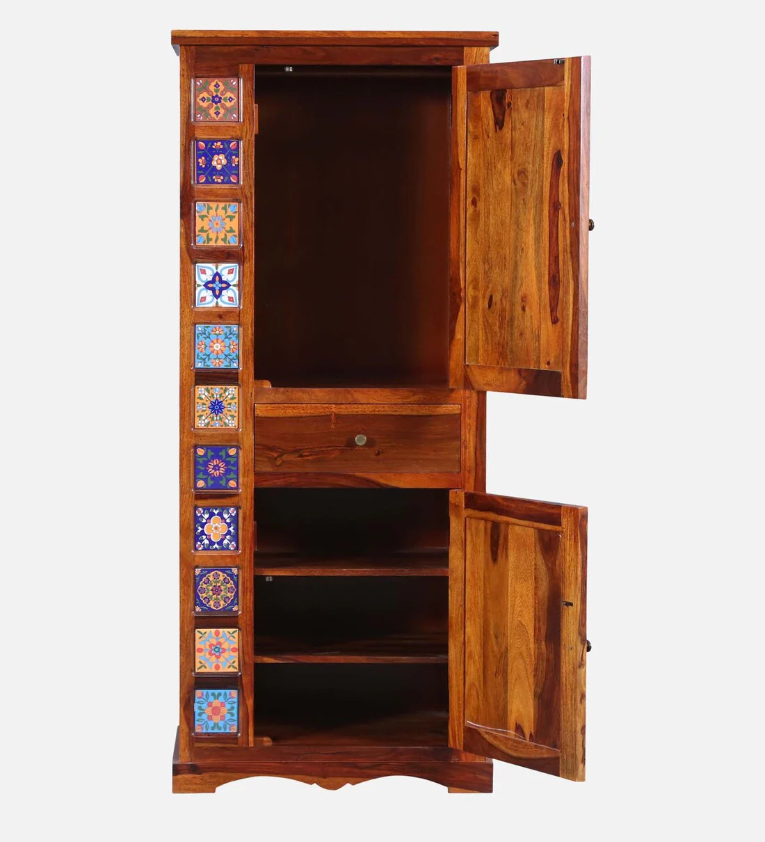 The wardrobe features a minimalist design that seamlessly integrates into any contemporary setting. Its smooth finish, combined with the beautiful grain patterns of Sheesham wood, creates a timeless appeal, making it a stunning focal point in your urban bedroom. With ample storage space, it provides a perfect solution for organizing your clothing, accessories, and other essentials without compromising on style.