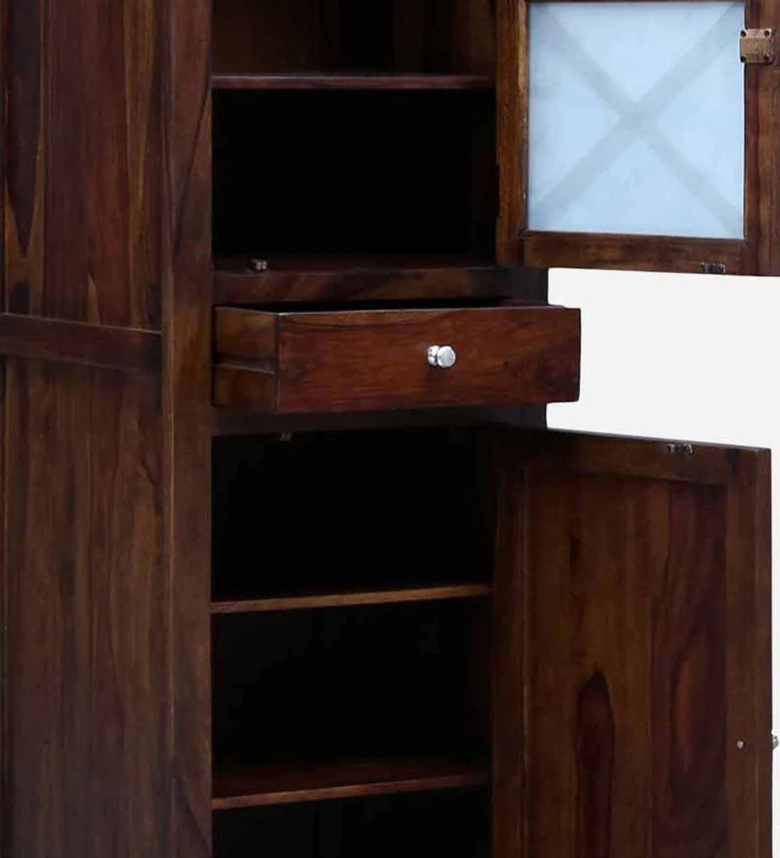 This space-saving wardrobe is ideal for small rooms, guest bedrooms, or minimalist interiors. It includes shelves and hanging space inside to keep clothing, accessories, and daily essentials well-organized. The smooth hinged door allows easy access, while the rich Sheesham texture offers a timeless look that complements both modern and traditional dΓ©cor.